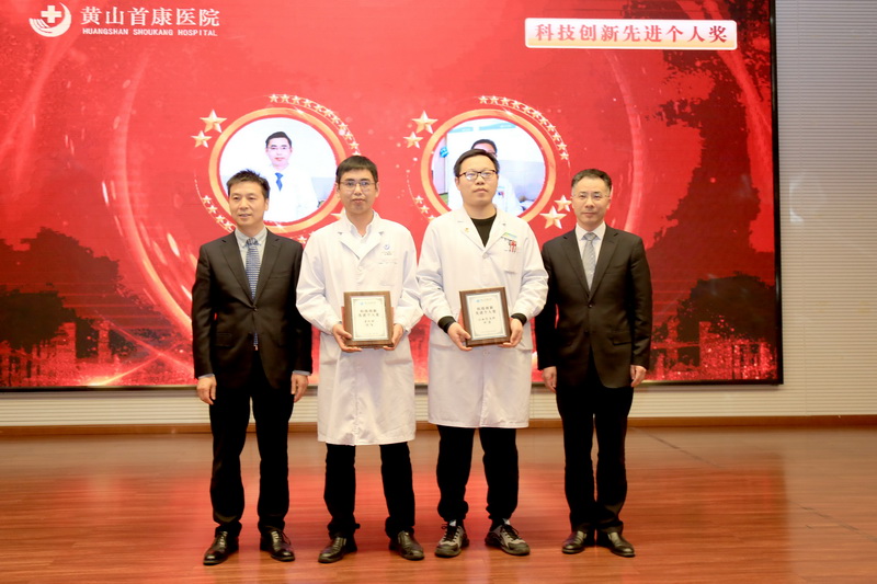 副院长翁延宏、汪承武为科技创新先进个人:程飞、许涛颁奖。