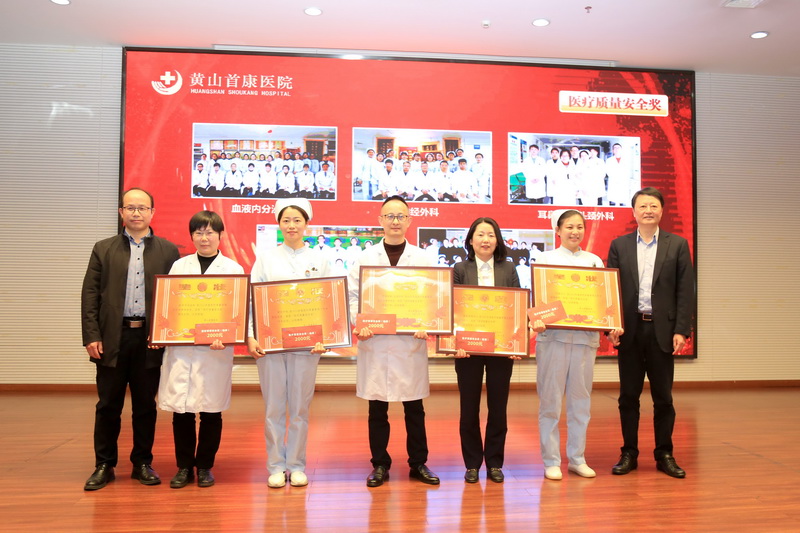 董事长徐建平、副院长吴捷华为医疗质量安全奖获得科室:血液内分泌科、神经外科、耳鼻咽喉-头颈外科、内镜中心、健康管理中心颁奖。