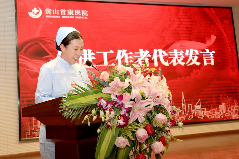 普外科医师林敏华、手术室护士刘敏代表先进工作者发言。