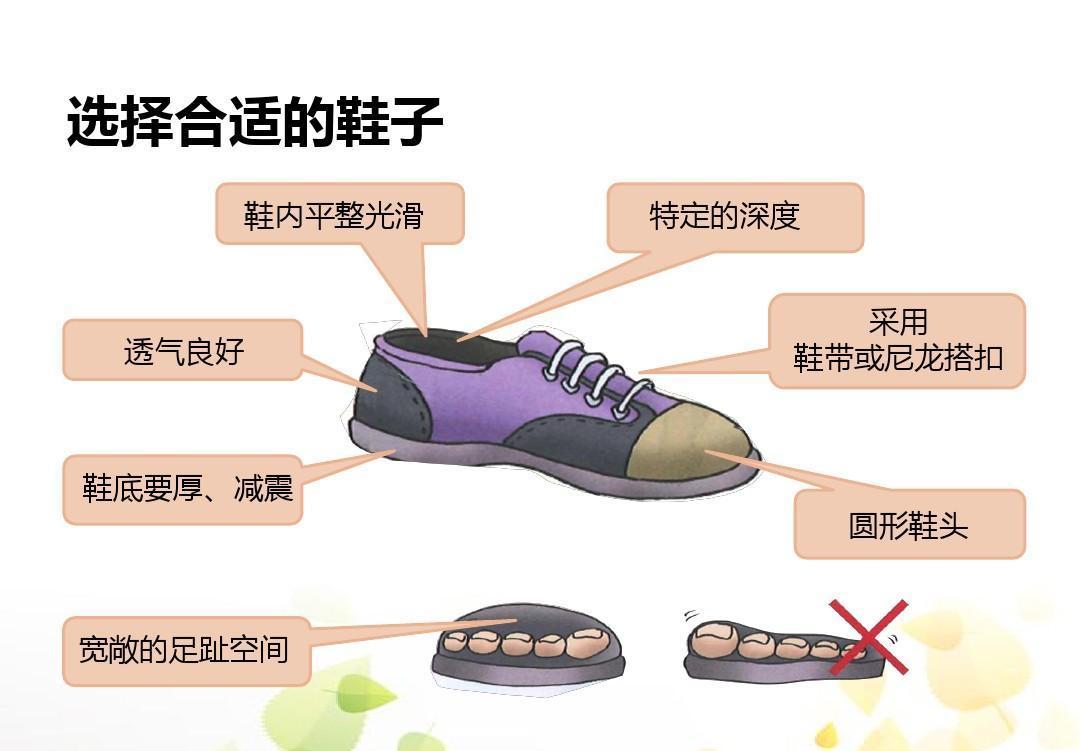 06鞋子尽量选择质地柔软、透气性好、圆头软底款式,不要穿尖头高跟鞋以及沙滩鞋;