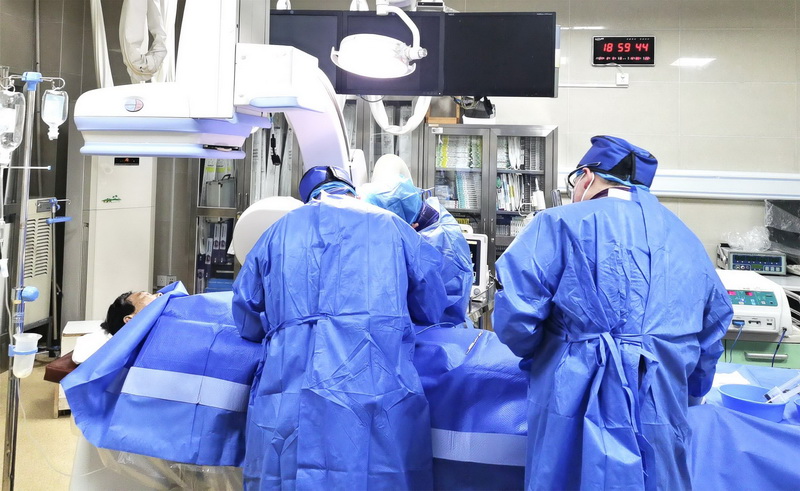 窗外不远处,朵朵烟花在空中绽放;介入室内,叶小利副主任与助手们伫立在台前,为吴某进行双侧股动脉切开取栓术。手术很顺利,吴某平安返回病房。