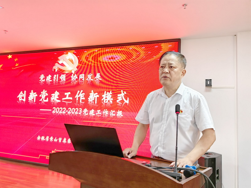 白鹏程书记向大会做2022-2023年度党建工作汇报,围绕医院党员组织架构、医院战略、党建创新工作、党建活动四个方面,阐述了近一年来医院党建工作的开展情况和取得的成绩,并提出了下一步工作计划。