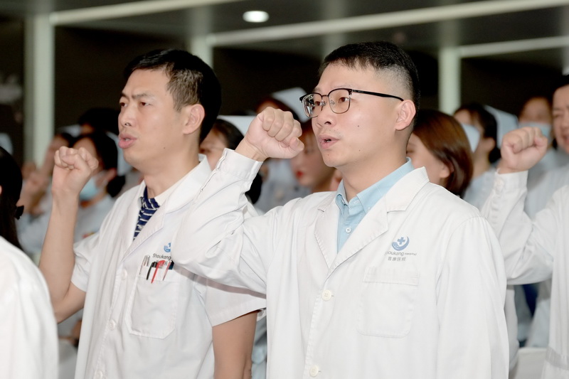 每一位医生在步入医学殿堂的时候都曾庄严宣誓,为了人民的健康,无论春夏秋冬、白昼黑夜,都将用双手续写生命的篇章。时代在变迁,但职业赋予医师使命般的意义和内涵从未改变。在亚星手机版官方登录副院长汪承武的带领下,全院医师起立、握拳,再次重温了《中国医师誓言》。