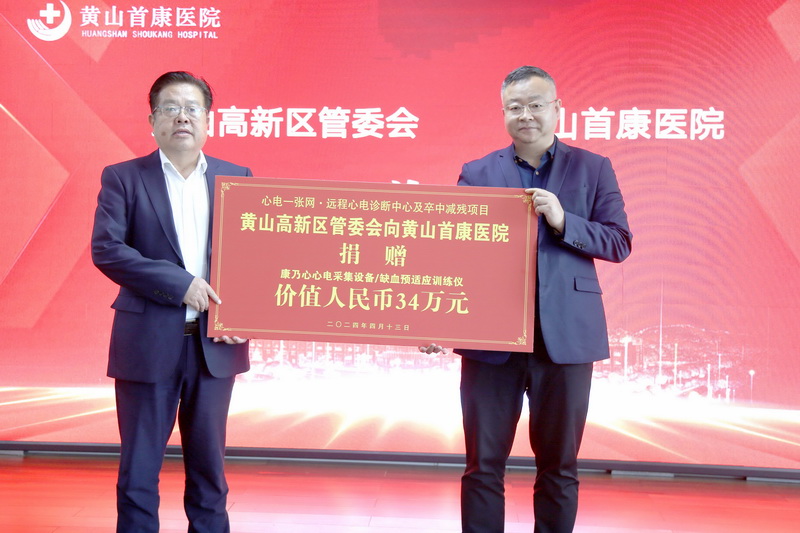 心韵恒安医疗科技向黄山高新区管委会捐赠心电采集设备与缺血预适应训练仪。